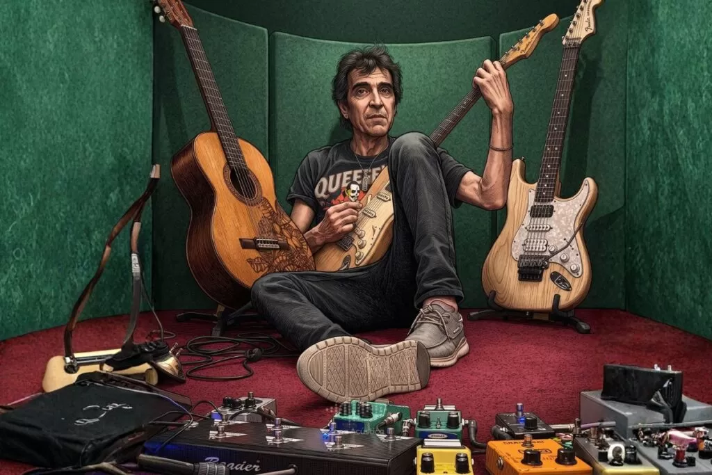 Su estilo en la guitarra melódico, limpio, profundamente sensible, fue la columna vertebral sonora de la banda durante décadas. No era la guitarra que grita, era la guitarra que conversa. La que te tomaba de la mano en Te vi en un tren, la que te mecía en Luz de día, la que construyó esa muralla verde que todos hemos necesitado alguna vez.